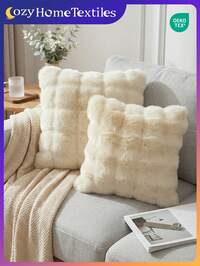 Cozy Home Textiles1/2/4 piezas Fundas de almohada de estilo Toscana de piel sintética de lujo, sin relleno de almohada, suaves y cómodas, esponjosas, fundas de cojín para decoración del hogar, adecuadas para sofá de sala de estar, cabecera de dormitorio, fundas de almohada de peluche beige, fundas de almohada de tamaño extra grande, cierre con cremallera, lavable a máquina, 45x45 pulgadas, certificado Oeko-Tex