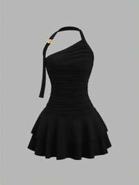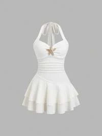 ROMWEVestido mini de punto de unicolor sin mangas, de alta elasticidad, minimalista y sexy, con encanto sexy, adecuado para vacaciones de verano, fiestas en la playa, fiestas de cóctel, clubes, citas callejeras, Navidad, Año Nuevo