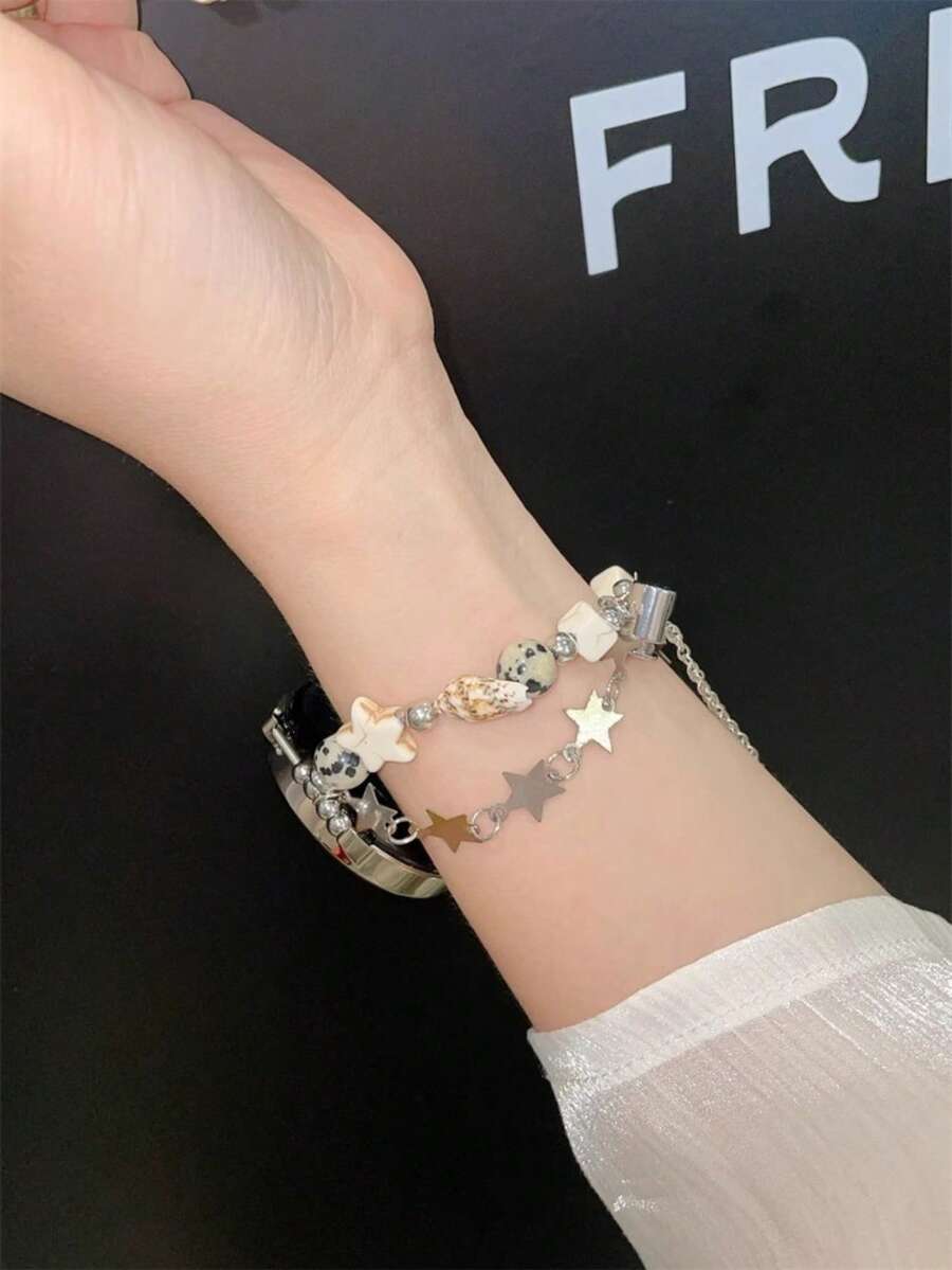 Correa de reloj de cadena de metal de concha de estrella compatible con Galaxy Watch 7/6/5/4 (40mm, 44mm, 47mm, 46mm, 41mm), Galaxy Watch 5 Pro (45mm), Galaxy Active 2, Galaxy The Watch 3 (18/20/22mm), compatible con HW Watch 5/4/3/2/1 y GT6/5/4/3/2, así como HW Watch Fit3/Fit4 y HW Band 8/9/10 NFC