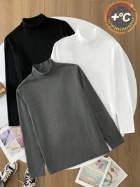 VacauraSHEIN Camiseta casual de contraste de color en blanco y negro para adolescentes, cómoda, de moda, versátil, de tela suave, adecuada para uso diario, escuela, viajes, deportes al aire libre, vuelta al colegio, otoño/invierno
