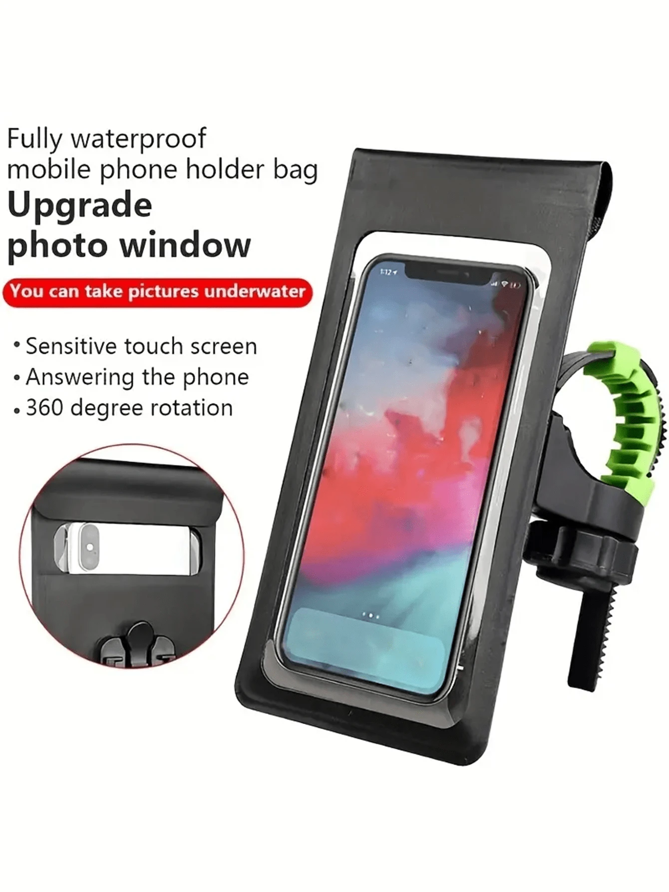 Bolso soporte para teléfono móvil impermeable y para exteriores para bicicleta/motocicleta, soporte para navegación de motocicleta/bicicleta eléctrica/entrega, reconocimiento facial de alta definición, sensible al tacto, rotación a cualquier ángulo, compañero de conducción deslumbrante