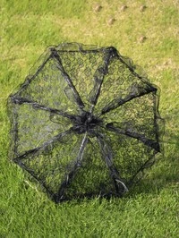 Paraguas de encaje negro de una pieza para novia, estilo europeo romántico de princesa, paraguas de boda adecuado para boda, fiesta, baile y disfraces. Conjunto de paraguas y abanico de encaje elegante negro para boda y Halloween con patrones florales intrincados, perfecto para duchas nupciales, sesiones de fotos y eventos temáticos, accesorios de boda, accesorio de evento temático, decoración de tema de princesa, sin necesidad de electricidad.