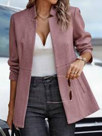 EMERY ROSEEMERY ROSE Chaqueta casual de mujer con cuello de solapa, manga larga y doble botonadura, abrigo largo de mujer, chaqueta larga de mujer, blazer de mujer con ribete negro, ropa de otoño, atuendos de otoño para mujer, abrigo de invierno de mujer, chaqueta de invierno de mujer, atuendos para salir, blusas elegantes para mujer, tops para salir para mujer, ropa de invierno para mujer, ropa de otoño para mujer