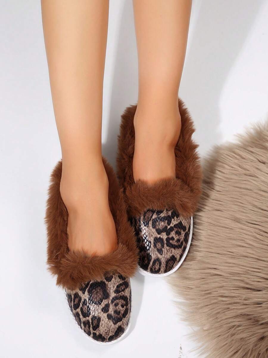 Zapatillas de mujer con forro de felpa cálido y suave, plantilla de piel de felpa cómoda para uso interior/exterior, zapatillas casuales con estampado de piel de serpiente suave
