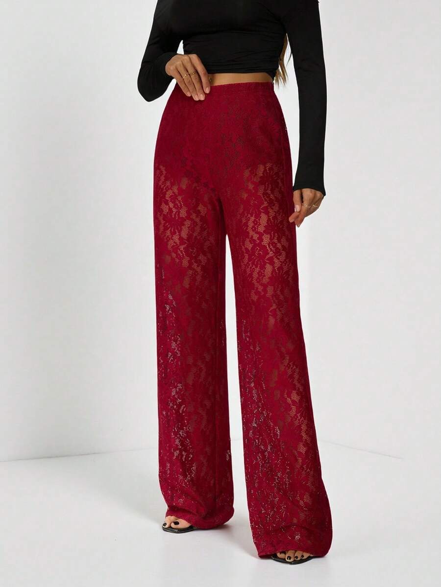 SHEIN Tall Pantalones largos transparentes de encaje de unicolor para mujer