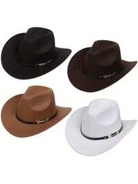 Tropiscape1 pieza Sombrero de unicolor para mujer/hombre - Sombrero de vaquero, con cinturón de cuero personalizado único y decoración de banda para el sombrero - Sombrero de vaquera, sombrero de dama soltera Shewell, sombrero de regalo novedoso e interesante KJ de ala ancha, adecuado para actividades, fiestas, fiestas de compromiso, juegos de roles, ceremonias de graduación, bailes de disfraces, festivales, celebraciones de cumpleaños, festivales de música de temática occidental para usar 1 pieza Sombrero de vaquero unisex con flecos enjoyados y brillantes, estilo punk creativo de ala ancha, adecuado como sombrero de dama de honor/novia, excelente para fiestas, eventos con temática occidental, reuniones, fiestas de compromiso, cosplay, graduaciones, bailes de máscaras, festivales, bodas, cumpleaños, festivales de música, ceremonias de mayoría de edad