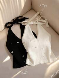 Ahlsen NovaNuevas blusas de moda para primavera/verano, suéter de punto de estilo francés para mujeres para festivales de música de primavera/verano, jersey, color block, calado, chaleco, vuelta al colegio, americano, maestro, suéter de los 70, ir al trabajo, minimalismo, ropa de oficina, retro, simple, francés, suéter de unicolor, blusas de otoño con estilo "old money", blanco, sexy, suéter de maestro, escote en V, sin mangas, blusa de punto casual de mujer con bloques de color sin mangas, cita, playa