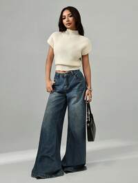 Serisse Suéter de punto de manga acampanada con cuello en V y ribete de color contrastante, top casual versátil de punto para mujer, adecuado para el uso diario y el otoño. Nuevos llegados de otoño e invierno, para usar a diario y en capas, de vuelta al colegio, para mujeres, tops lindos, tops para salir, mujeres de dinero antiguo, casual de negocios, para todas las estaciones, suéter navideño, acción de gracias para mujeres