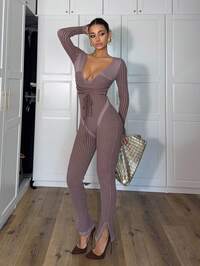 SoleiaSoleia Nuevo mono de tirantes de punto degradado, adecuado para tomar el té por la tarde, playa, , festival de música, otoño/invierno, vestido de iglesia para mujer, atuendo de aeropuerto para mujer, vuelta al cole, atuendo de fiesta de festival de música, disfraz de Halloween, atuendo de negocios para mujer, vestido de noche para cita, atuendo sexy de discoteca para mujer, estilo occidental, bohemio, gótico, vestido de cita, cuello asimétrico, decoración metálica