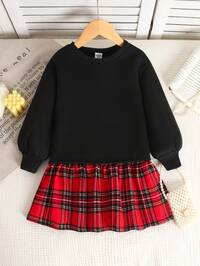 Maija KidsMaija Kids Maija Kids Vestido de sudadera holgado y cómodo con forro térmico y estampado de cuadros para niñas, adecuado para volver al colegio, fiestas, bodas, niña de las flores, uso casual, ceremonias de apertura, uso diario, colegio, viajes, vestido de otoño, Navidad